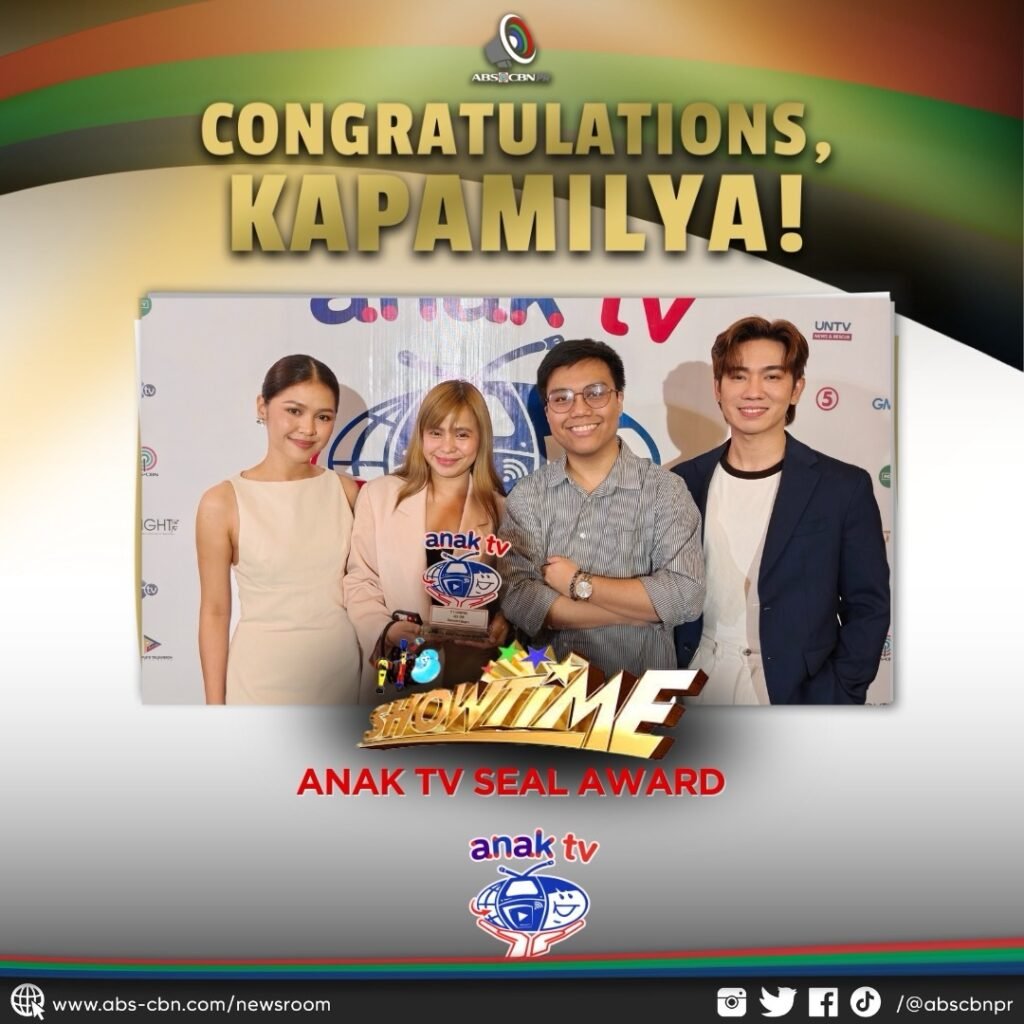 ABS-CBN’s primetime noontime show “It’s Showtime,” along with game show “Rainbow Rumble,” children’s program “Goin’ Bulilit,” reality talent competition “Pilipinas Got Talent Season 7,” and public service program “My Puhunan: Kaya Mo!” received the Anak TV Seal for their child-friendly content.